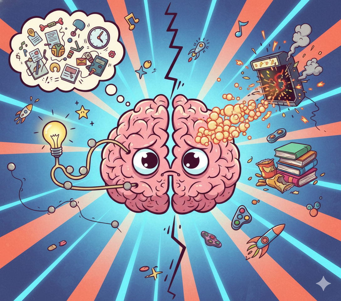 The Novelty Trap: Your brain craves stimulation because it needs more dopamine to feel engaged. You hyperfocus on interesting things for 12 hours but can't start boring work emails.